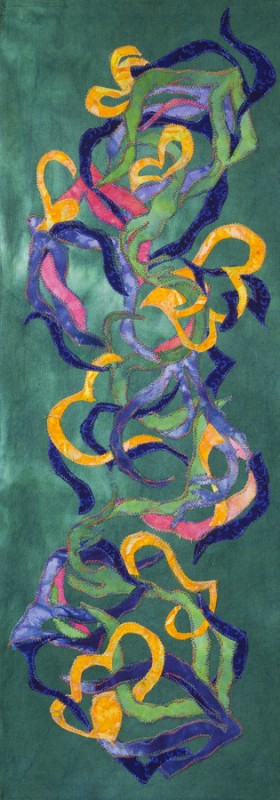 Canvas cotton, linen, silk hand dyed. Machine stitched, applique, and embroidered.
