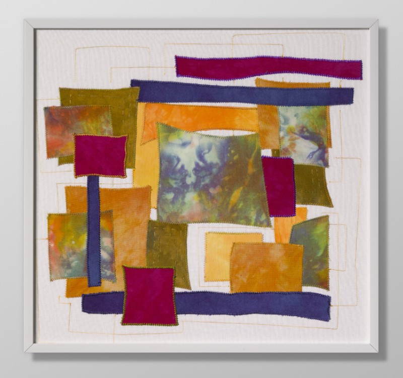 Cotton, linen. Hand-dyed, painted. Machine stitched. Hand and machine embroidered.