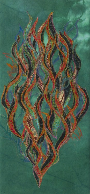 Canvas, cotton, linen, silk. Hand-dyed, machine stitched and embroidered.